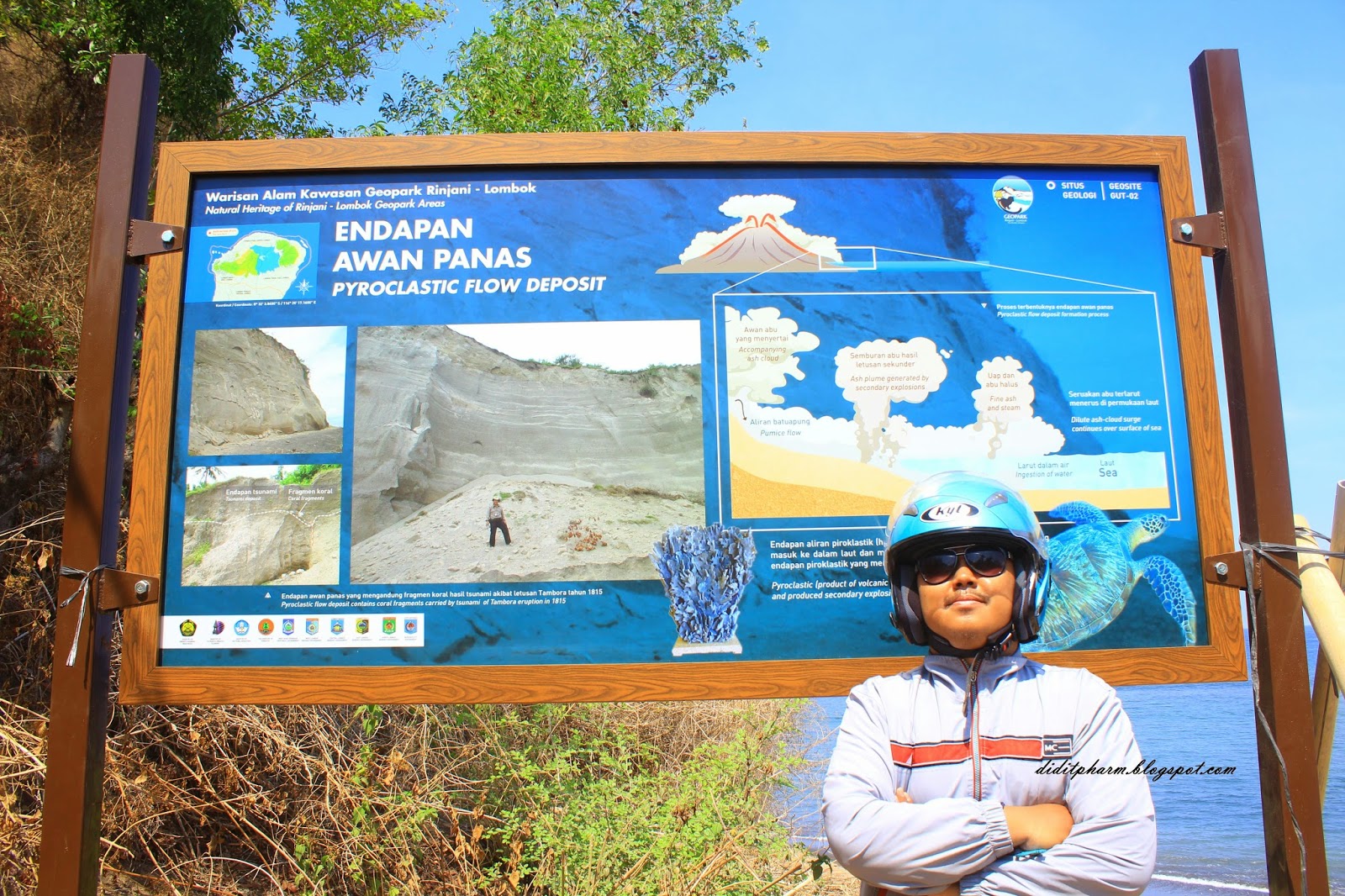 Belum banyak yang mengetahui posisi pantai ini, jadinya saya akan mempromosikan pantai ini melalui tulisan saya di blog ini beserta beberapa foto yang saya dan adik saya miliki tentang keindahan tebing serta pantainya yang cukup tenang dan membuat kita enjoy. Sebenarnya terbentuknya tebing ini awalnya dari pembentukan endapan awan panas yang mengandung fragmen koral hasil tsunami akibat dari letusan Gunung Tambora tahun 1815. Jadi jangan heran jika melihat bentuk tebingnya yang seperti batu kapur yang mudah pecah.
